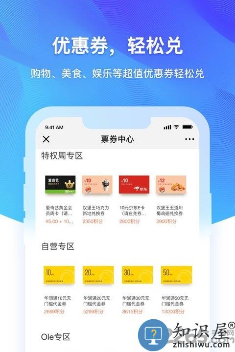 华润通积分优惠商城,提供积分充值缴费、积分互通、积分换购礼品,更有签到送积分、积分游戏等活动;