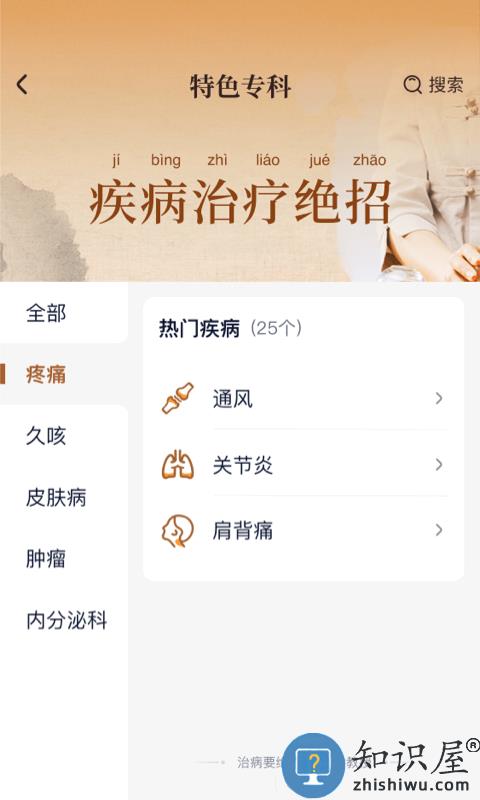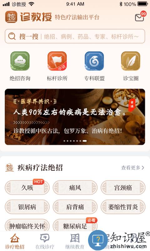 诊教授app是医疗服务类的软件,用户可以在上面查看各种疾病治疗的绝招,疾病的分类十分的详细,大家可以按照自己的实际需求选择,帮助大家减轻病痛的折磨,为你的生活带来更多便利,有需要的用户快来下载使用吧。