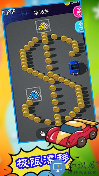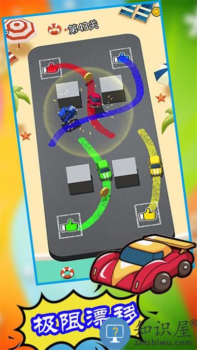 ·放置不同颜色的小车,它们有各自的专属停车位,玩家通过划线,帮助小车绕过障碍正确停在自己的停车位上