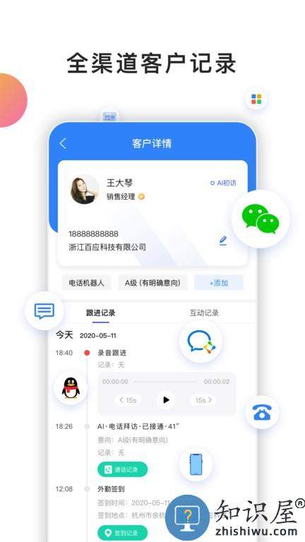 有效记录和管理电话、短信、微信中的销售全过程,自动录入CRM