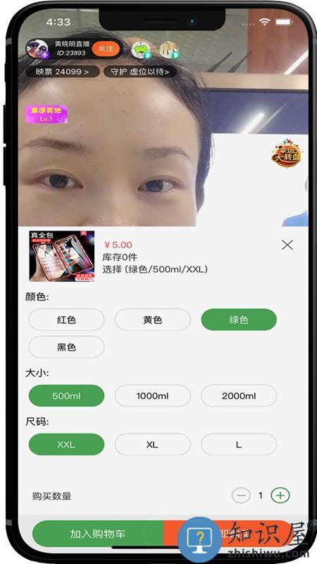 手机观看直播,因为这里支持直播导购的方式所以用户可以一边看直播一边选商品;