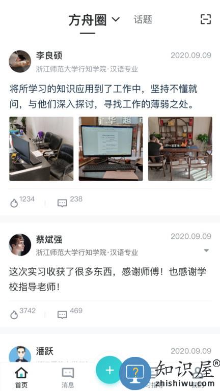 进入首页中,可以切换圈子或话题,浏览推荐的动态信息