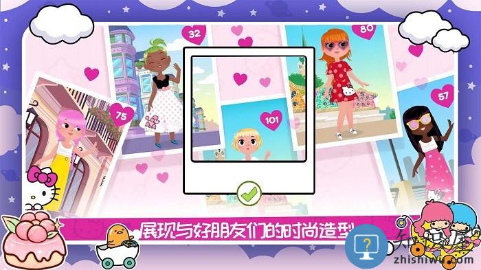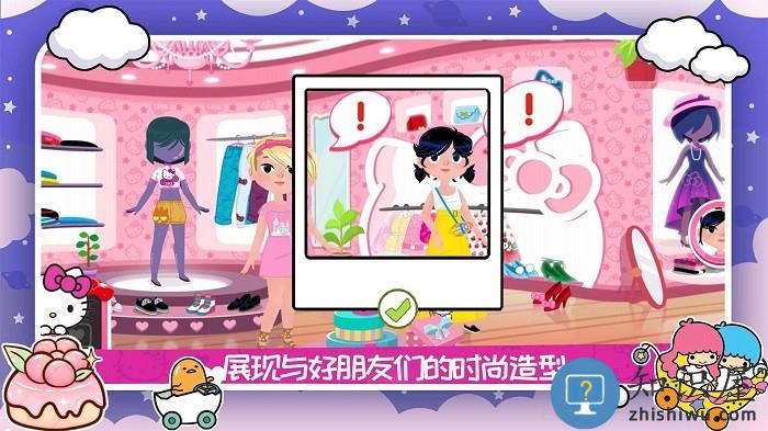 1、在这个全新的卡通世界中你可以进行各种探索,跟随凯蒂猫来一起换装。
