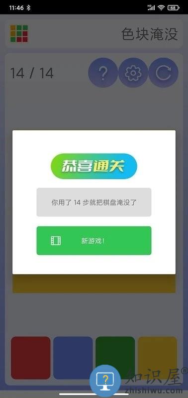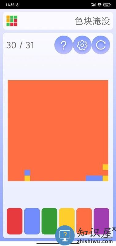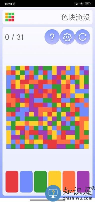 主要玩法是淹没相同颜色块游戏,限定步骤完成简单游戏。 在你开始的左上角。利用彩色按钮沿着底部的颜色板向洪水一样发出所有相邻的色块充满了颜色。游戏的目的是填满整个颜色板。