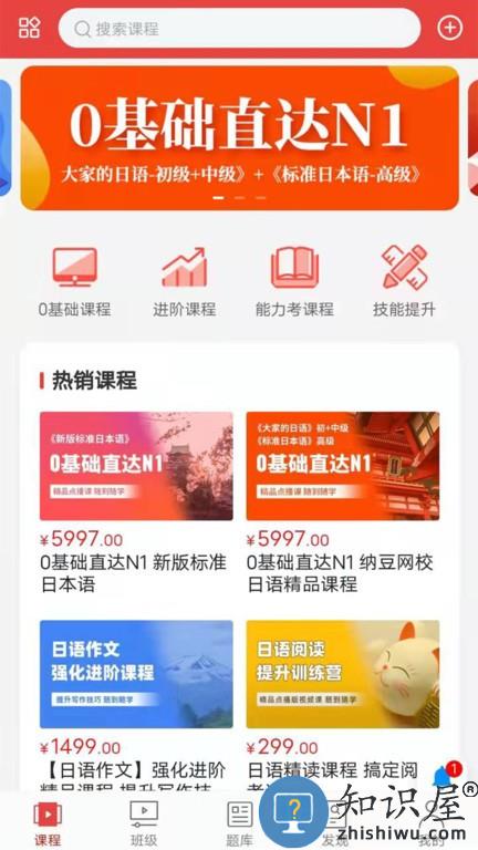 纳豆网校app最新版包含的日语课程丰富,支持查看课程的详细目录和介绍,能够在线上直播课,还能加入班级,在线做题进行巩固和测试,能够查看日语的语法,还能找日语相关的工作。