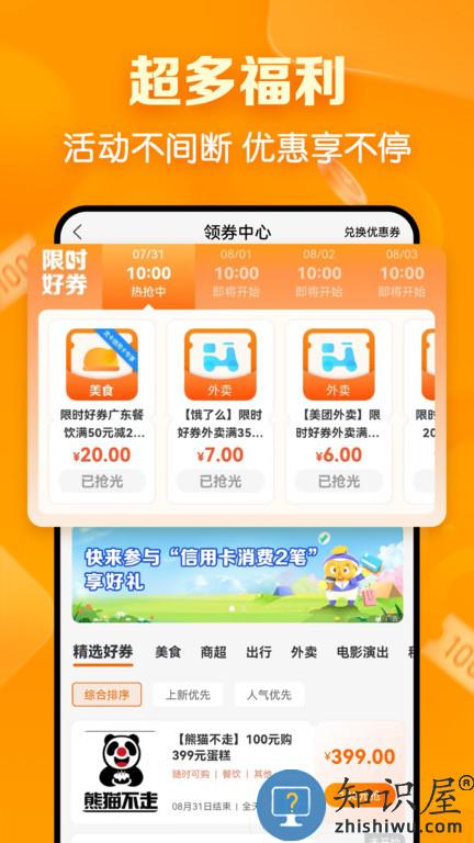 吃美食、点外卖、看电影、充话费,你想要的优惠福利都有