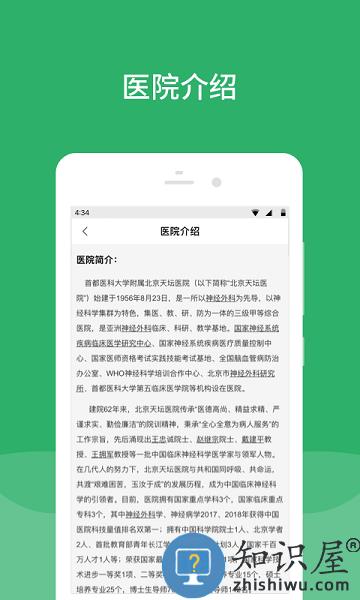 首都医科大学附属北京天坛医院官方APP内置医院介绍、科室介绍、医生介绍、智能导诊等板块,可以十分方便您进行预约挂号操作,还有一系列的健康科普知识免费推送!