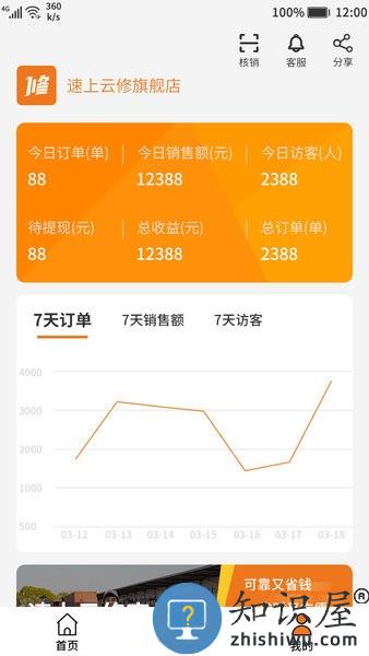 速上云修商家版app手机端是为商家用户打造的综合管理软件,支持在手机上查看最新的服务订单,及时的安排工程师进行处理,可以查看实时的进度,还能查看每天的订单数、销售额以及访客等数据。