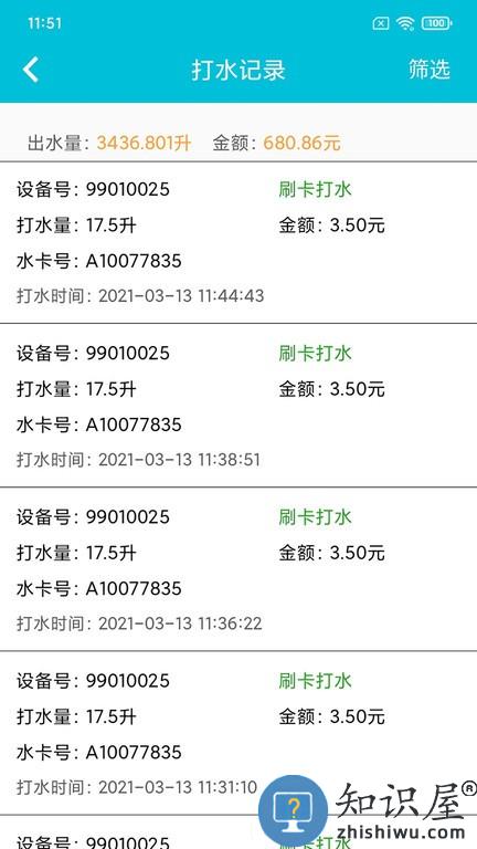 水芯云软件最新版可以用手机来管理打水系统,有非常详细的设备和水卡列表,支持在手机上查看打水设备的运行状态,支持查看历史的打水记录,有非常详细的收入统计,还能够管理设备和会员哦!