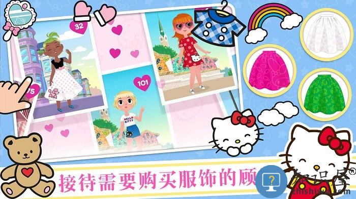 3、卡通动画风格的装扮小游戏,凯蒂猫在这里拥有许多不同的外观搭配;