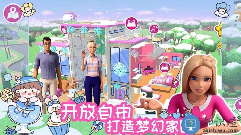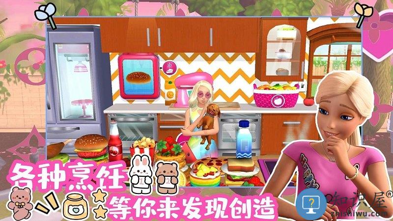 创建属于你自己的芭比梦幻屋体验!你可以设计每个房间。来认识我的死党、狗狗和爱丽莎!快来参加梦幻屋里的各式有趣活动:烘焙、跳舞或经典的泳池派对!乘坐我的粉红色敞篷车,出发探索马里布,寻找更多趣味活动。另外,请帮我和我的朋友们打扮得时髦出彩,拍出美美的照片!跟随我们踏上刺激的梦幻屋大冒险,体验一切皆有可能!