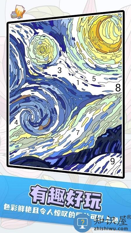 数字绘画填色游戏安卓版是一款休闲益智类型的填色游戏,适合各个年龄段的人玩儿,这里有非常多的作品,有动画漫画中的经典场景,也有各个著名画家的作品,选择自己喜欢的画面进行填色,感受休闲放松的时刻!