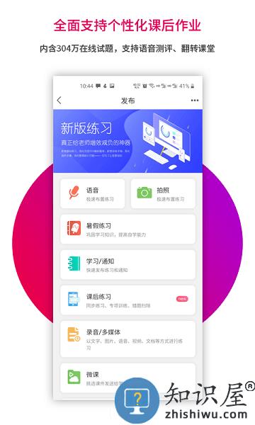 学习/通知主要用于老师发布班级通知、课前预习、课后作业或朗读等。拥有超过520多万道各版本科目的课文同步试题,按难度、易错、提高练习等进行了分类。