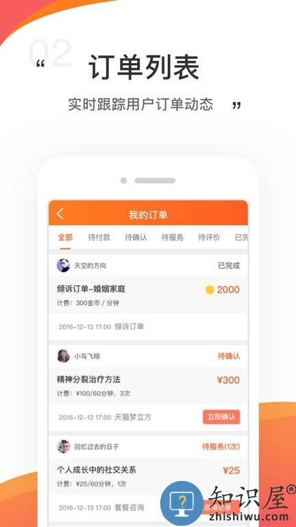 自动将订单进行分类,查看待服务、待付款、待评价等;
