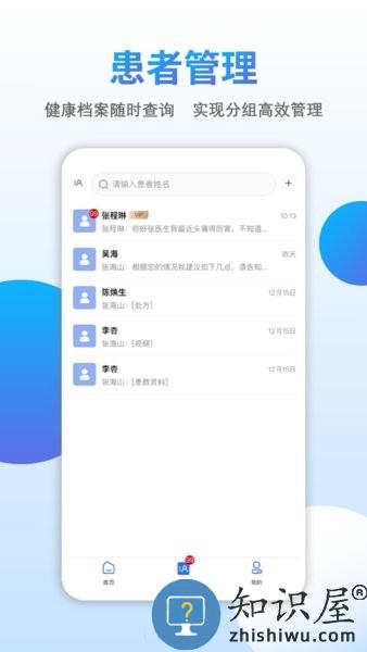 患者管理:可以查看患者信息,设置患者分组、查看患者健康档案、就诊记录、过往病历等。
