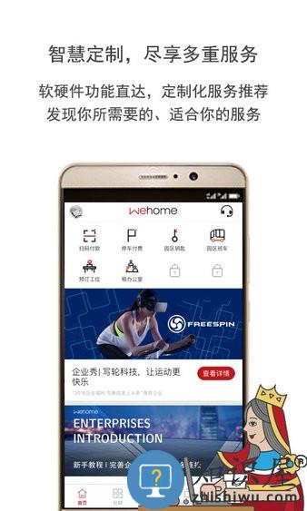 首页服务列表,提供停车、会议室等多种园区特色服务,开启wehome,一键体验智慧园区。