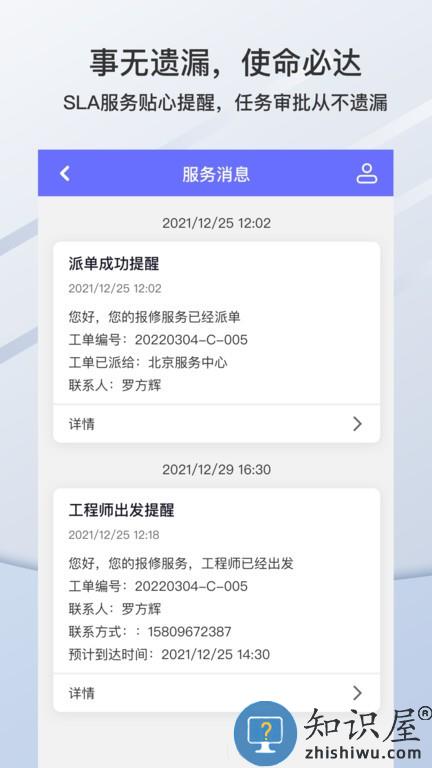 橡数云软件最新版是移动办公的好帮手,能够在手机上进行故障报修,便捷的天界具体的故障信息,支持上传图片,还能查看售后评价,支持查看工单的实时处理进度,还能及时接收最新的消息通知。
