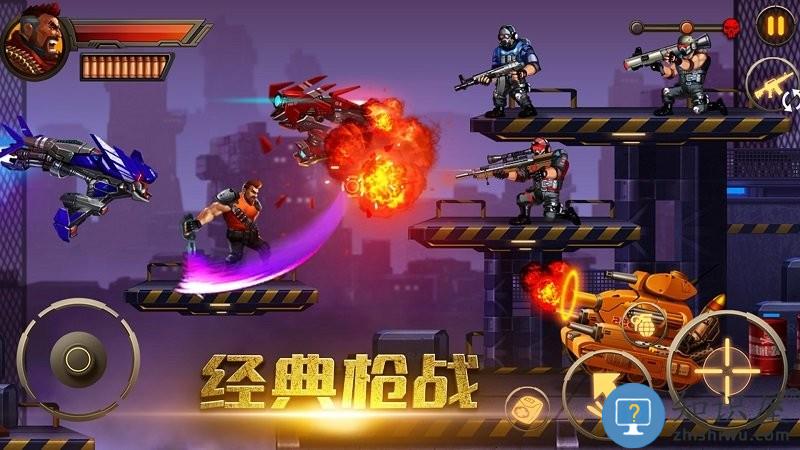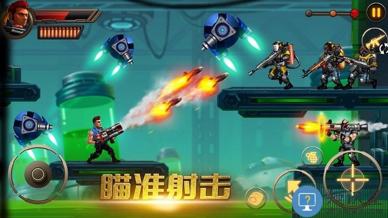 这个游戏将带您通过一系列的经典水平, 各种和敌人的战斗与令人惊叹的经验侧滚动。使用各种武器通过强大的火力压制你的敌人和BOSS、 金属坦克、 直升机,去结束邪恶的军队领导人和他的恐怖世界。