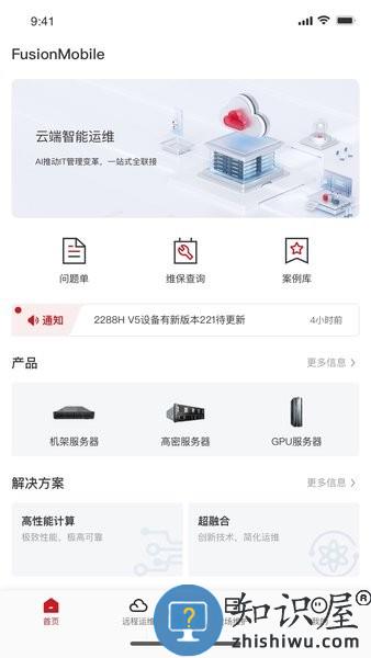 fusionmobile运维app能够在手机上查看实时的设备运维情况,可以添加多个产品进行监测,能够及时查看最新的问题单,可以进行维保记录查询,还有非常详细的案例库可供参考和学习。