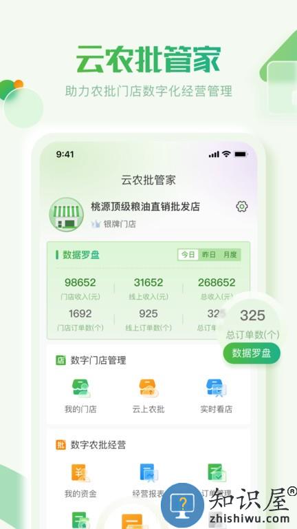 云农批管家app软件适合门店用户进行农场品管理,可以及时查看最新的采购和销售订单,支持查看每天的门店以及线上收入,还能进行数据对比,可以及时出示收款码来完成收银,还能管理员工。