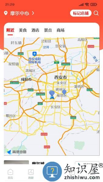 附近找店,切换到附近中心就可以快速在这里寻找店铺,并确定其位置所在。