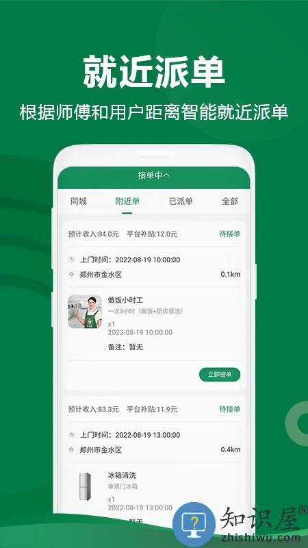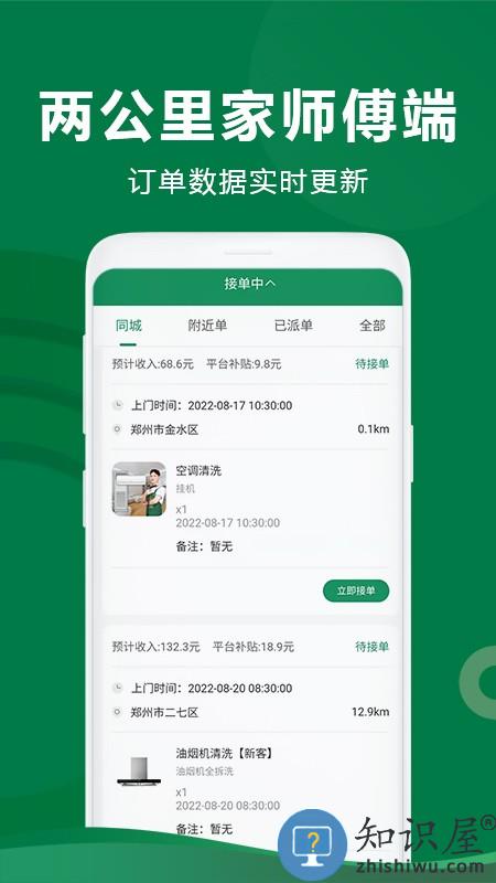 两公里家师傅端是郑州两公里家科技有限公司旗下开发的一款专供家庭服务师傅接单APP,用户在两公里家用户端下单,师傅端根据师傅注册认证的专业特长精准派单,以师傅和用户的距离就近派单,实现快速上门服务。