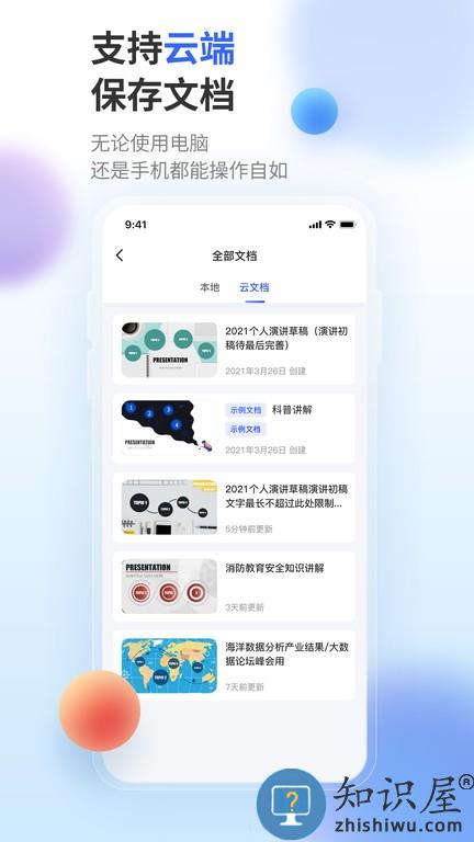 「云端同步」支持云端保存文档,无论使用电脑还是手机都能操作自如;