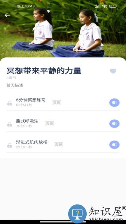 一款身心健康辅助管理工具,为用户提供冥想练习、专业的心理健康量表测评、心理健康知识,专业医院信息等,辅助用户进行睡眠管理、焦虑减缓、心理健康自助评估等。