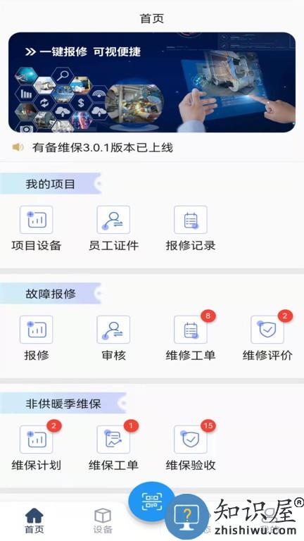 扫描识别设备,进行报修的时候可以使用扫一扫功能自动识别设备基本信息;