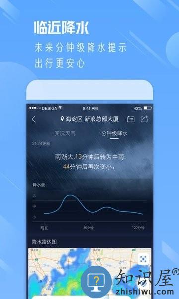 分钟级预报和降水地图——未来降水预报,准确到分钟级别。用户所在街道,每时每刻雨雪变化,尽在掌握;