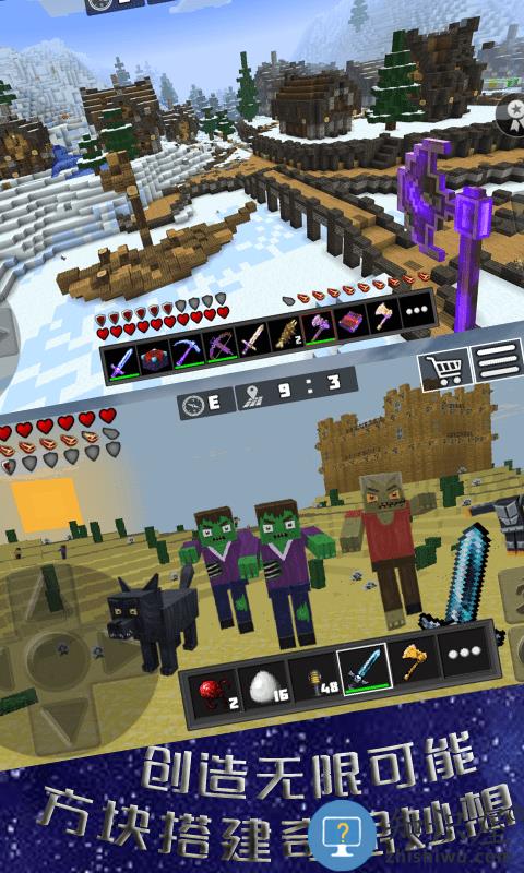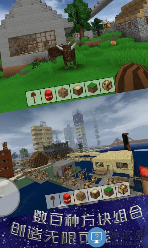 超过1000种各式各样的方块,船、床、TNT、矿,像素风格沙盒创造世界生存游戏