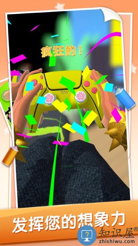摇杆控制角色移动,在可喷漆的地方停下几秒即可喷漆完毕,你可以从墙上的水管来进行上下移动;