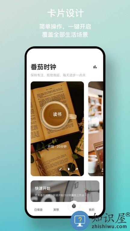 1. 快捷设置,涵盖多种生活场景,如工作、阅读、学习,快速进入番茄工作法。