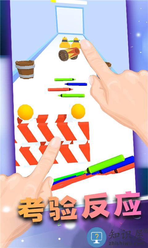 4.到达终点为画板补色即可完成游戏挑战,若在挑战途中画笔全部掉落则游戏失败.