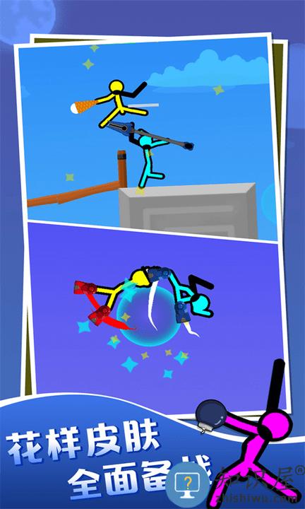 2,使用各种不同的组合技能粉碎所有挑战对手,能够操纵角色战斗,反转敌人,简单卡通风格的火柴人,激情战斗。