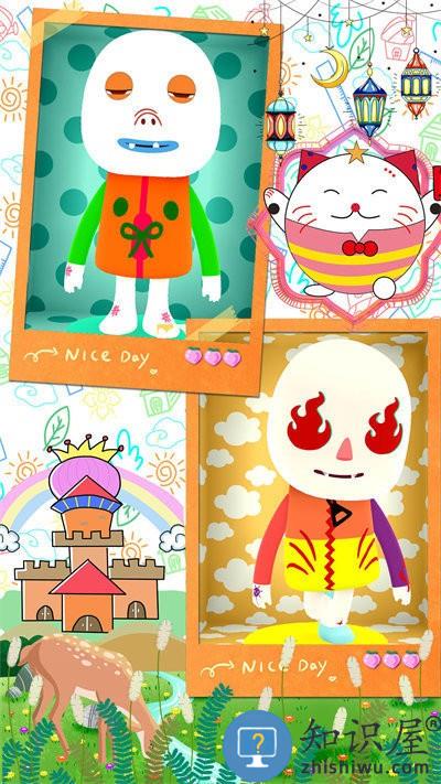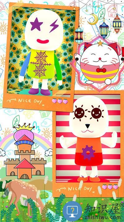 让我们开始吧,点击你的米尼来增添颜色、条纹、袖子还有裤子。发挥你的创造力来使用这些印章,他们可以帮助增添更多的细节,诸如帽子、袜子、花边和纽扣。增加面部特征可以让你的米尼微笑、打喷嚏和学会看世界!