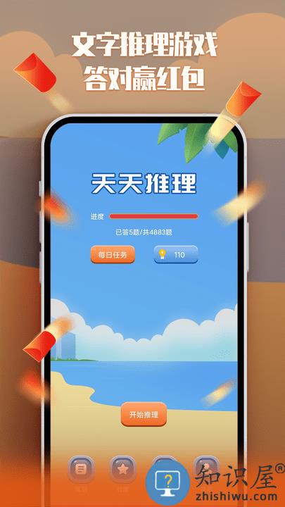 天天推理文字烧脑游戏,每一个游戏关卡都极具代表性和独特性,内容丰富,难易有度,见面有礼,领新手奖励红包,诚意十足!
