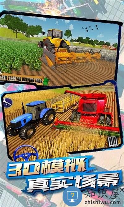 2、驾驶各种各样不同类型的拖拉机在道路情况非常复杂的乡间小道上行驶