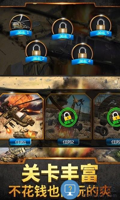 2、各种不同的武器你可以去装备自己的直升机,提升自己的攻击实力