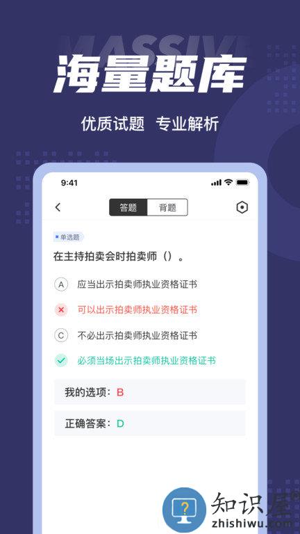 拍卖师题库内含考点练习,全国通用卷以及地区卷模拟练习,以及按照固定考试比重的随机式的抽题的真题考场,成绩单实时记录考试数据,一点一滴的反馈考生近期学习状态以及自我正确率的提升,大大的给予考生通过考试的信心。