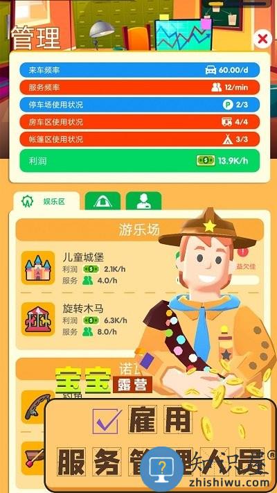 无论是休闲区、生活区还是员工区,都需要收银员、保安和清洁工来保持营地的良好状态。
