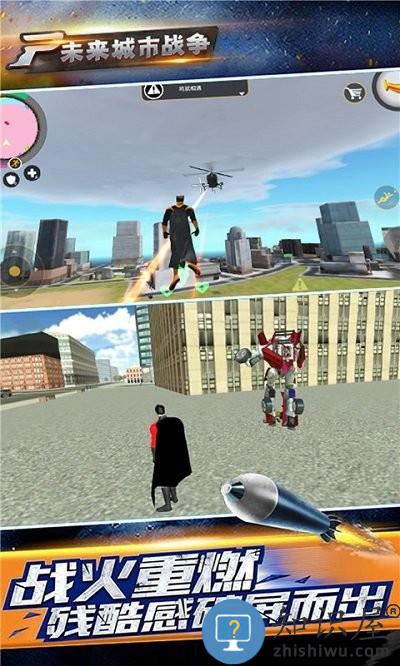未来城市战争游戏中你将为城市二战!超多的罪犯在这里肆意的破坏,你作为超级英雄需要将他们一一的消灭,超真实的对战场景,让你来感受到热血狂飙,并且还能来解锁超多的道具让你来在城市中穿梭,喜欢超级英雄的快来下载看看吧!