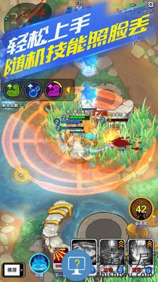 完全不同于传统MOBA的战场机制,没有小兵,你需要自己击杀野怪让它们当你的小弟;不用出装,你可以拾取地图上不同种类的buff,获取相应加成;每隔一段时间,战场中间还会出现中立祭坛,占领后可以对敌方防御塔造成极大伤害!总之,在这个不需要发育的战场,一切随机,需要你及时应变!