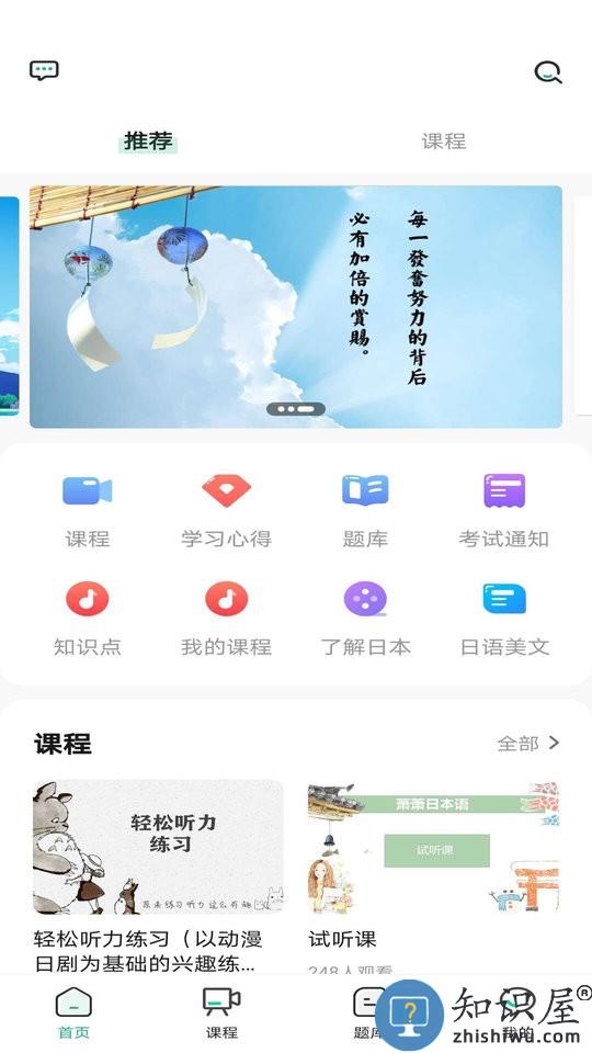 1.支持从基本开始的日语课程学习,学习心得分享,海量题库练习,考试通知随时查看.