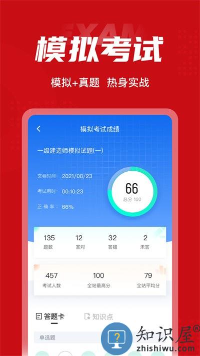 一级建造师app新增模拟考试功能,一级建造师可按照自我练习的考点选择相对应的模拟试卷,也可选择搭配好的模拟整卷考试。