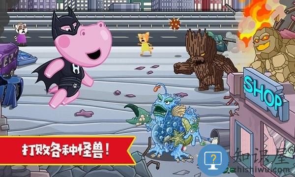 超级歹徒再次行动!河马镇及其公民又处于危险之中。创建您自己的超级英雄的身份和击败自己的方式在宇宙最邪恶的怪兽,河马蜘蛛侠,河马蝙蝠侠,河马浩克,河马铁人准备帮忙!加入游戏,这将是一场史诗般的战斗!
