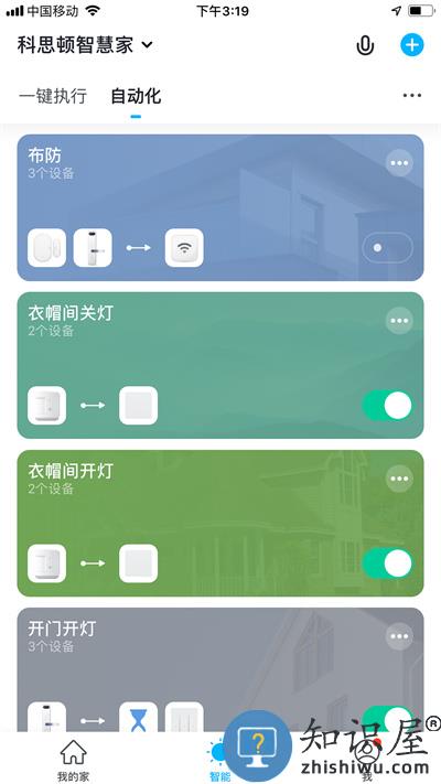 功能自定义化:可根据用户的需求,灵活配置,自定义场景, 例如:离家场景 自动关闭灯光空调等电器。