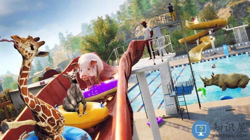 1、荒诞整活:设计搞怪物理动作系统,山羊能用摆烂摔破坏场景,制造混乱干扰NPC日常生活,创造独特喜剧效果。