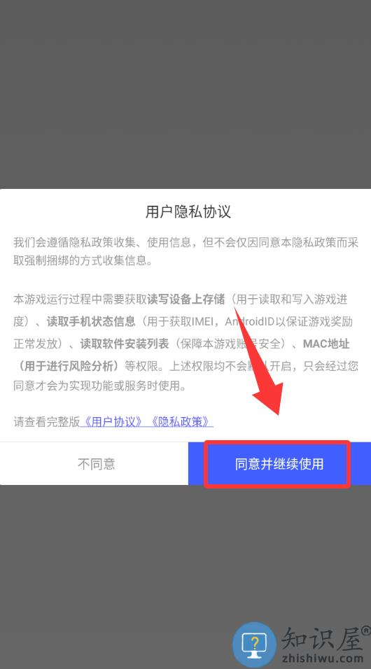 1、点击用户隐私协议里的同意并继续使用。