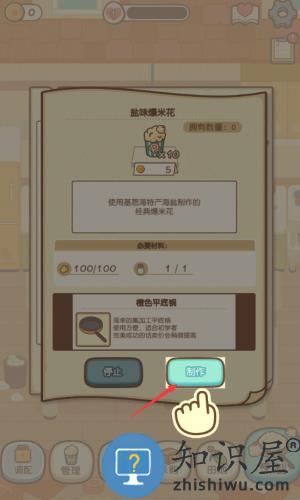 1、点击制作按钮,开始烹饪盐味爆米花。